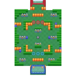 The map has an open center with wall corners creating opportunities for heavyweights to sneak through the side lanes. Goals have three tile openings with four entrances which are all two tiles wide. The sides of the map and corners contain bushes which stretch across sections of the map illustrating a change of pace near goals.