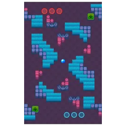 The Crowd Strike map is medium-sized, featuring an open layout with several obstacles and open spaces in the middle. It has multiple lanes that create a dynamic, fast-paced battlefield. Some sections have bushes to provide cover, but for the most part, it encourages strategic positioning and long-range combat. The map’s design usually focuses on team coordination and requires players to be mindful of enemy positioning while also ensuring they control key areas. The map is symmetrically diagonal.
