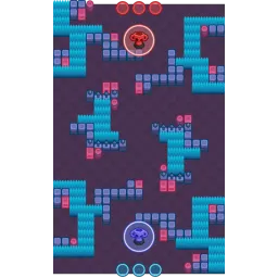 The map has both bush pathways and corridors. At the center are two large bush clusters creating another diagonal pathway between lanes.
