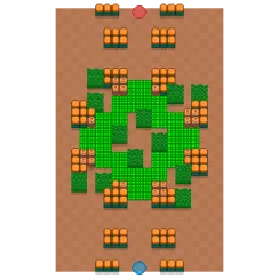 Near the spawns there are groups of walls, but the right and left lanes are open. More towards the center, there are some walls scattered around speed pads. There are 4 tile square bushes near the walls. In the center of the map it is fairly open. This map is diagonally symmetrical.