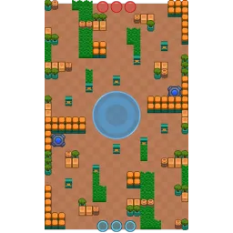 The map consists of many cover for the spawns of players. Once reaching the center, it's mostly barren, consisting of 5 fences from the middle of the zone and 2 teleporters can be seen. The sides include walls and the tree pots. The map is diagonally symmetrical.