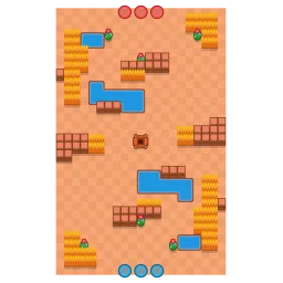 The map is noticeably open, as there are lakes near the spawnpoints on the map and near the Gem Mine. There is also a patch of grass on the left side on the spawnpoints. The map is diagonally symmetrical.