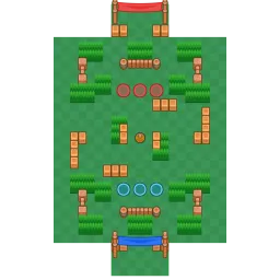 The map has a number of little walls, with most of these walls being no larger than three tiles long. Bush clusters are placed near the walls. The center has two small walls partially covered in bushes that are also near to each other, blocking Brawlers from dodging shots when they attempt to grab the ball in the center, but towards the corners, the map starts to get more open. The map is diagonally symmetrical.