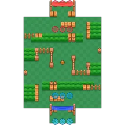 There are many walls in this map, but most obstruct horizontal movement rather than vertical movement, making long-ranged Brawlers still viable for this map. The fences in the map are an interesting mechanic of this map as these fences are positioned in such a position where scoring in made easier if a teammate passes the ball to a teammate over the fence. The map is diagonally symmetrical.
