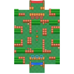 The map is very maze-like. With cacti blocking the center, it is difficult to directly attack. There are 12 sections of the map with walls and bodies of bushes, 2 L-shaped obstacles parallel to each other as well as 2x3 blocks beneath each of them. Each goal has a barrier made of wooden boxes in front of them with sections of grass next to it. The map is diagonally symmetrical.
