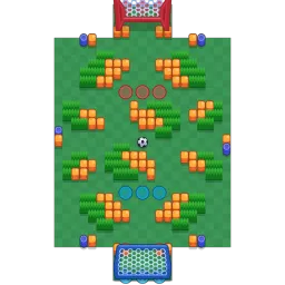 Although this map does not have walls in front of the goal that most other maps feature, the main defences of this map is made up of walls that force diagonal movement, making enemies' approach difficult. These wall clusters create small confined spaces, weakening the strength of long-ranged Brawlers while making mid-range and close-ranged Brawlers more viable. The map is diagonally symmetrical.