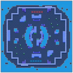 The map has very large clearings on the side of the map, with nearly no obstacles obstructing the two sides. In the centre of the map are two streams of water hydrophilic Brawlers could exploit. The map is diagonally symmetrical.