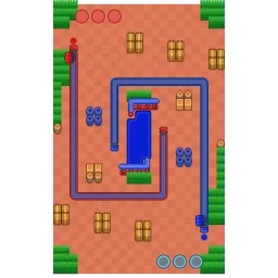 This map consists of a large lake which the Payload tracks are centered around. Three 2x2 hay bales run diagonally from spawn and small bushes are scattered around the map. The map is diagonally symmetrical.