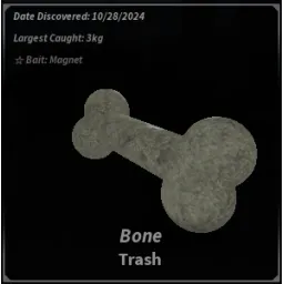 The Bone is a Trash item obtainable at Brine Pool. Due to its low rarity, it makes for an easy catch, moving slowly across the fishing bar.