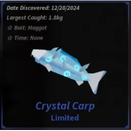 LimitedThe Crystal Carp was a Limited fish obtainable in The Ocean during the Winters Edge event. Due to its low rarity, it made for an easy catch, moving slow and steady across the fishing bar.