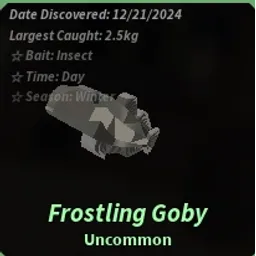 UncommonThe Frostling Goby is an Uncommon fish found in Glacial Grotto. Due to its low rarity, it makes for an easy catch, barely moving along the fishing bar.