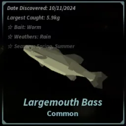 CommonThe Largemouth Bass is a Common fish obtainable in the Moosewood Village pond and Terrapin Island. Due to its low rarity, it makes for an easy catch, moving slow and steady across the fishing bar.