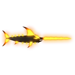 LegendaryThe Scalding Swordfish is a Legendary fish obtainable in the Volcanic Vents. Due to its high rarity, it makes for a challenging catch, moving erratically across the fishing bar. When reeling it in, a -60% progress speed decrease is inflicted.