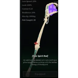 The Free Spirit Rod was a rod obtainable from the Isle of New Beginnings at X: -386, Y: 78, Z: -389, costing 200,000E$. This rod provides two passives, making it worth the hefty cost. One of which is the piercing passive, similar to rods such as the Trident Rod among others.