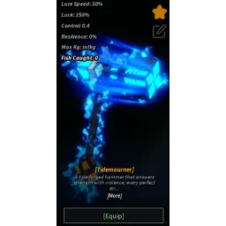 The Tidemourner is a rod obtained via crafting. It boasts a high control and luck but a low lure speed and resilience.